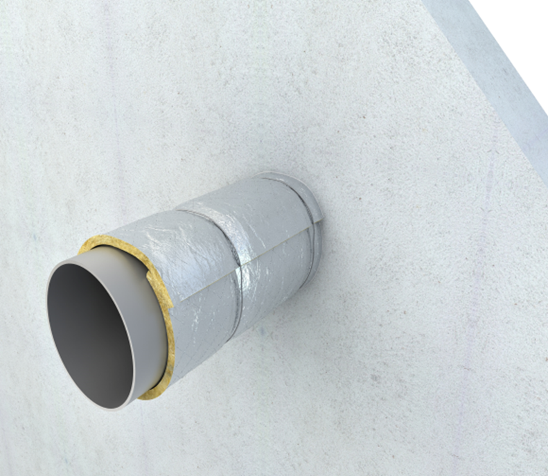 Προμήθεια και εφαρμογή υλικού πυροπροστασίας κλάσης EI 120/180 για διέλευση γυμνών μεταλλικών σωλήνων με μέγιστη διάμετρο 300 mm που αποτελείται από στρώμα AF PIPEGUARD για τη διατήρηση θερμοκρασιών κάτω από το όριο που απαιτείται από Πρότυπο EN 1366-3.